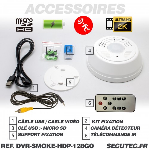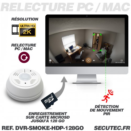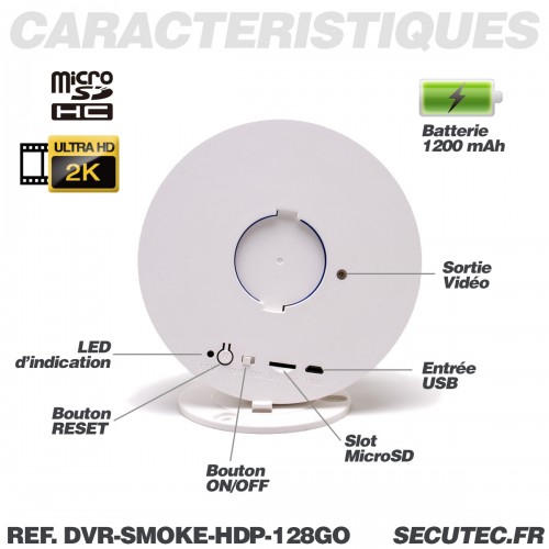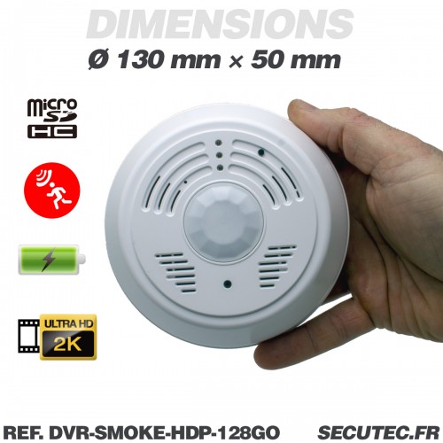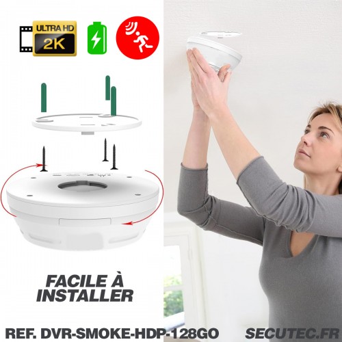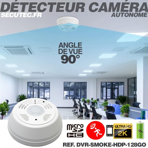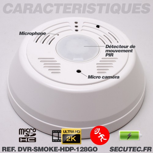 Caméra cachée UHD 2K dans détecteur de fumée factice Détection de mouvement mémoire microSD 128 Go