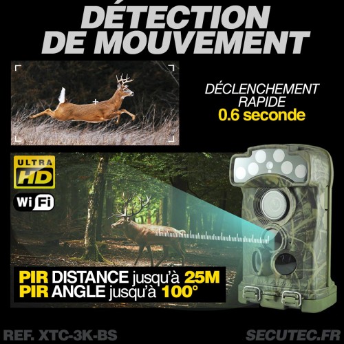 Déclenchement ultra-rapide : Capture automatique en moins de 0,6 seconde après détection de mouvement PIR.