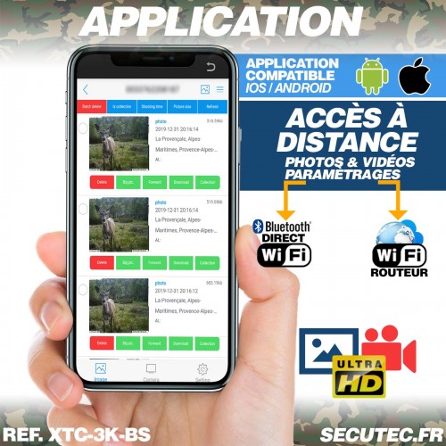 Les photos et vidéos sont enregistrées localement sur carte mémoire SD / SDHC, compatible de 16 à 256 Go, garantissant une grande capacité de stockage sur le terrain.