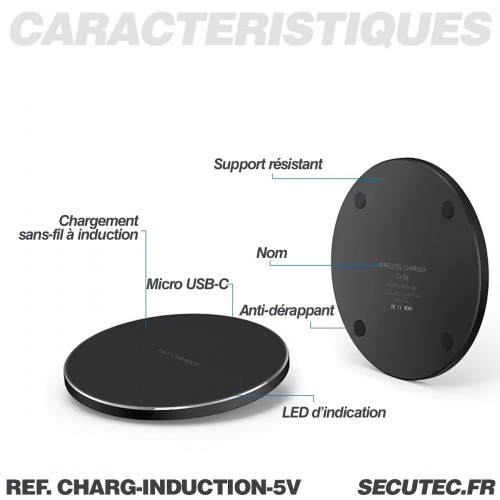 Ce chargeur sans fil offre une puissance de sortie de 5V / 2A permettant une recharge stable et efficace de vos appareils. Il dispose également d’un indicateur LED bicolore (vert / bleu) pour visualiser l’état de la recharge, ainsi qu’un système de sécurité anti-surchauffe et anti-surtension pour protéger vos équipements.