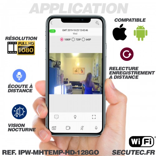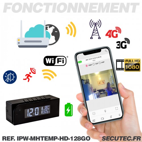 - Horloge température caméra IP Wi-Fi P2P infrarouge invisible