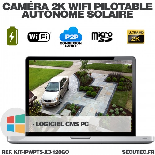 Le kit de caméra réf: KIT-IPWPTS-X3 vous propose 3 caméras réf.IPW-PT-SOLAR-4MP-V2-128GO, Afin surveiller votre propriété (maison, villa, entrepôt, garage, lieux isolés, ...) depuis votre smartphone / tablette.