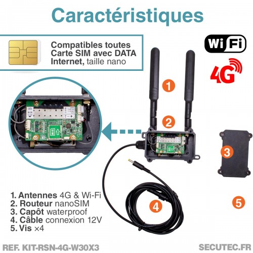 - Connexion Wi-Fi robuste via les réseaux 3G et 4G, idéale pour les zones sans accès filaire.
