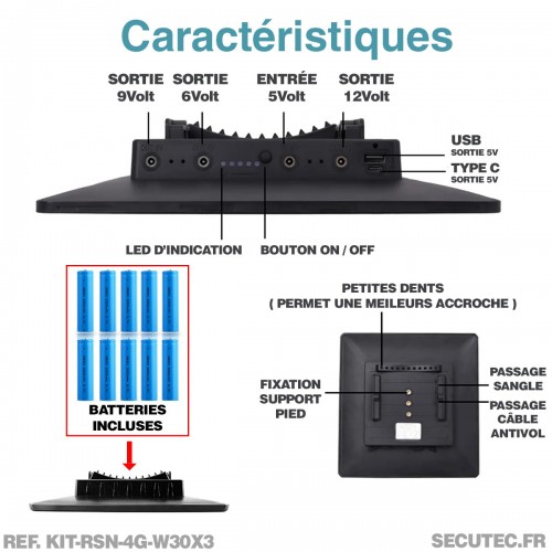 Norme 3G, 4G, WIFI 802.11 Wifi type 802.11 b/g/n Carte SIM compatible Toutes, DATA Alimentation
