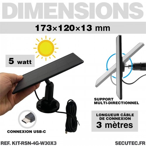 - 3 × Panneaux solaires avec câbles USB type C ( 3 mètres )