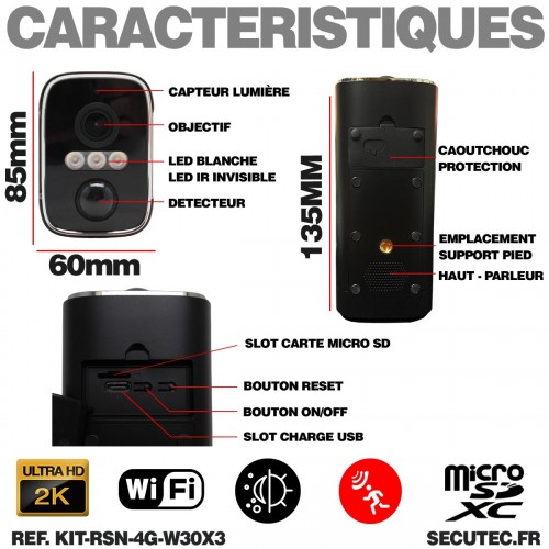 - Stockage : La caméra peut enregistrer sur une carte mémoire microSD jusqu’à 128 Go.