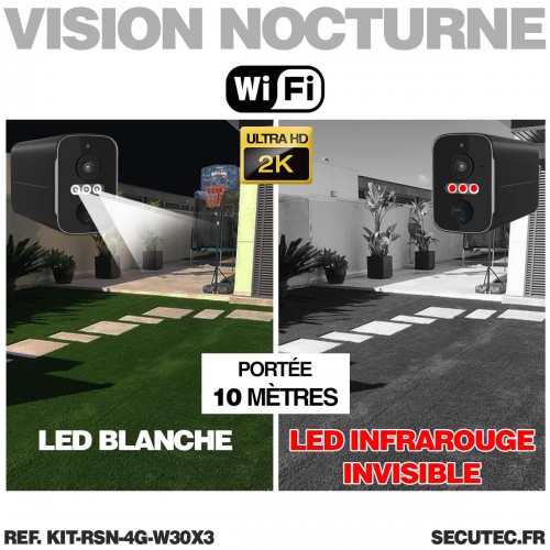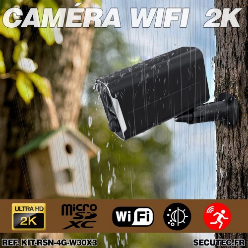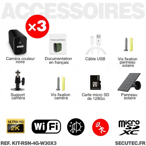 3× Caméras solaire WiFi noire 2K infrarouge invisible batterie ultra longue autonomie détection de mouvement et humaine 128Go :