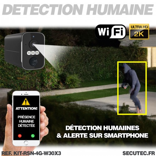Kit vidéosurveillance 3G 4G autonome avec 3 caméras ultra longue autonomie solaires WIFI UHD 2K 4MP détection humaine accès à distance via iOS Android 128Go