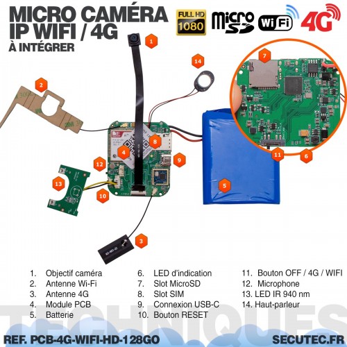 Installation discrète et personnalisée (DIY) : micro caméra IP WiFi ou 4G LTE facile à intégrer pour un usage sur mesure.
