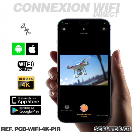 La connexion Wi-Fi direct permet un pilotage à distance via application mobile (iOS et Android), avec visualisation en direct, partage des fichiers et configuration complète.