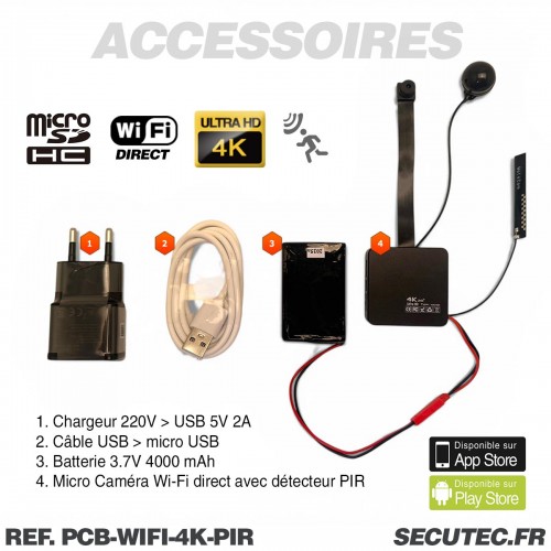 - 1 × Module caméra Wi-Fi ultra HD 4K avec détecteur PIR