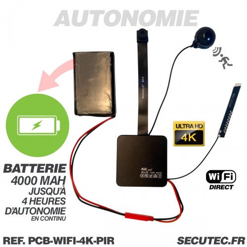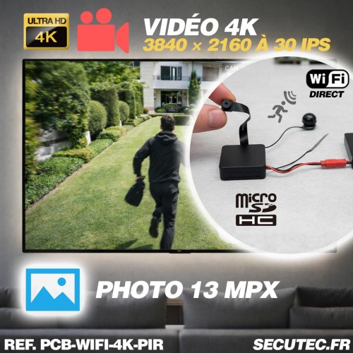 Micro camera wi-fi direct ultra HD 4K à 30 ips capteur 13MP détection de mouvement PIR batterie 4000 mAh microSD jusqu’à 256 Go
