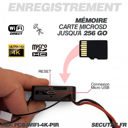 Grande capacité de stockage évolutive : Compatible microSD jusqu’à 256 Go, pour enregistrer de longues séquences sans interruption.