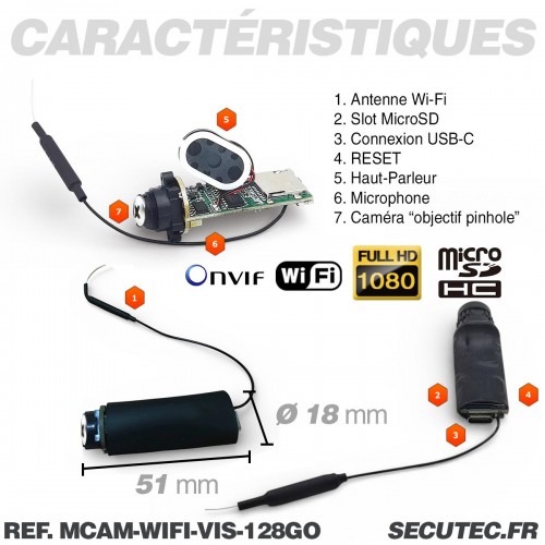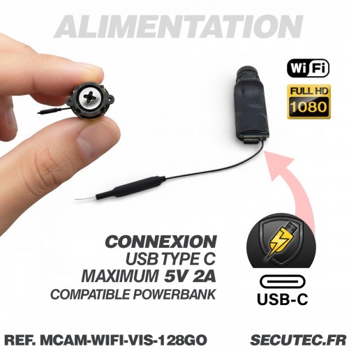 Micro caméra WiFi Full HD 1080P objectif vis connexion USB-C audio bidirectionnel enregistrement intelligent sur carte micro SD 128Go