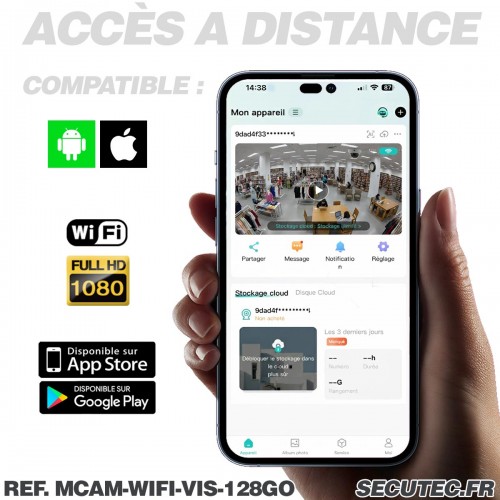 La caméra permet l’enregistrement audio et vidéo synchronisé, pour une restitution complète des événements. Les vidéos sont stockées localement sur carte micro SDHC jusqu’à 128 Go incluse, sans abonnement ni dépendance au cloud.