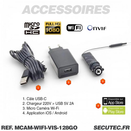 - 1 × Micro caméra Wi-Fi 2 Mpx avec objectif vis