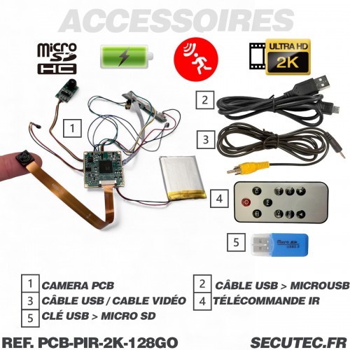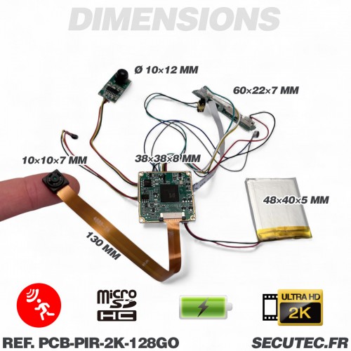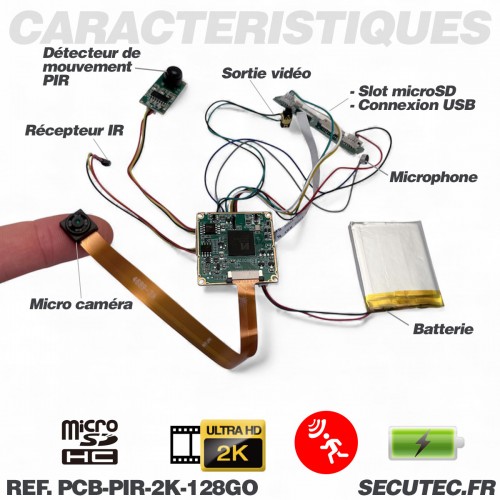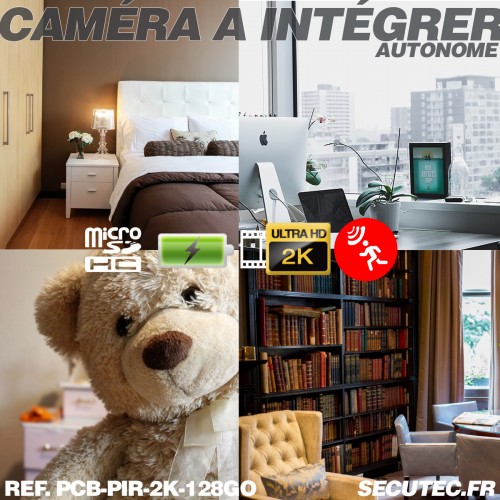Micro caméra 4K à intégrer longue autonomie détection de mouvement par capteur PIR infrarouge invisible micro sd 128 Go incluse