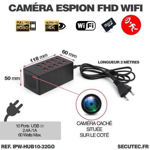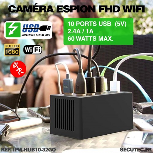 - 1 × Caméra cachée WiFi dans un chargeur USB type HUB 10 ports