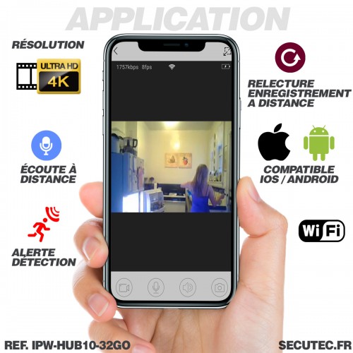 - Surveillance à distance : Grâce à sa connectivité Wi-Fi (Box internet ou routeur 4G), cette micro caméra IP permet une surveillance à distance via votre smartphone ou tablette. Vous pouvez garder un œil sur votre espace où que vous soyez dans le monde.